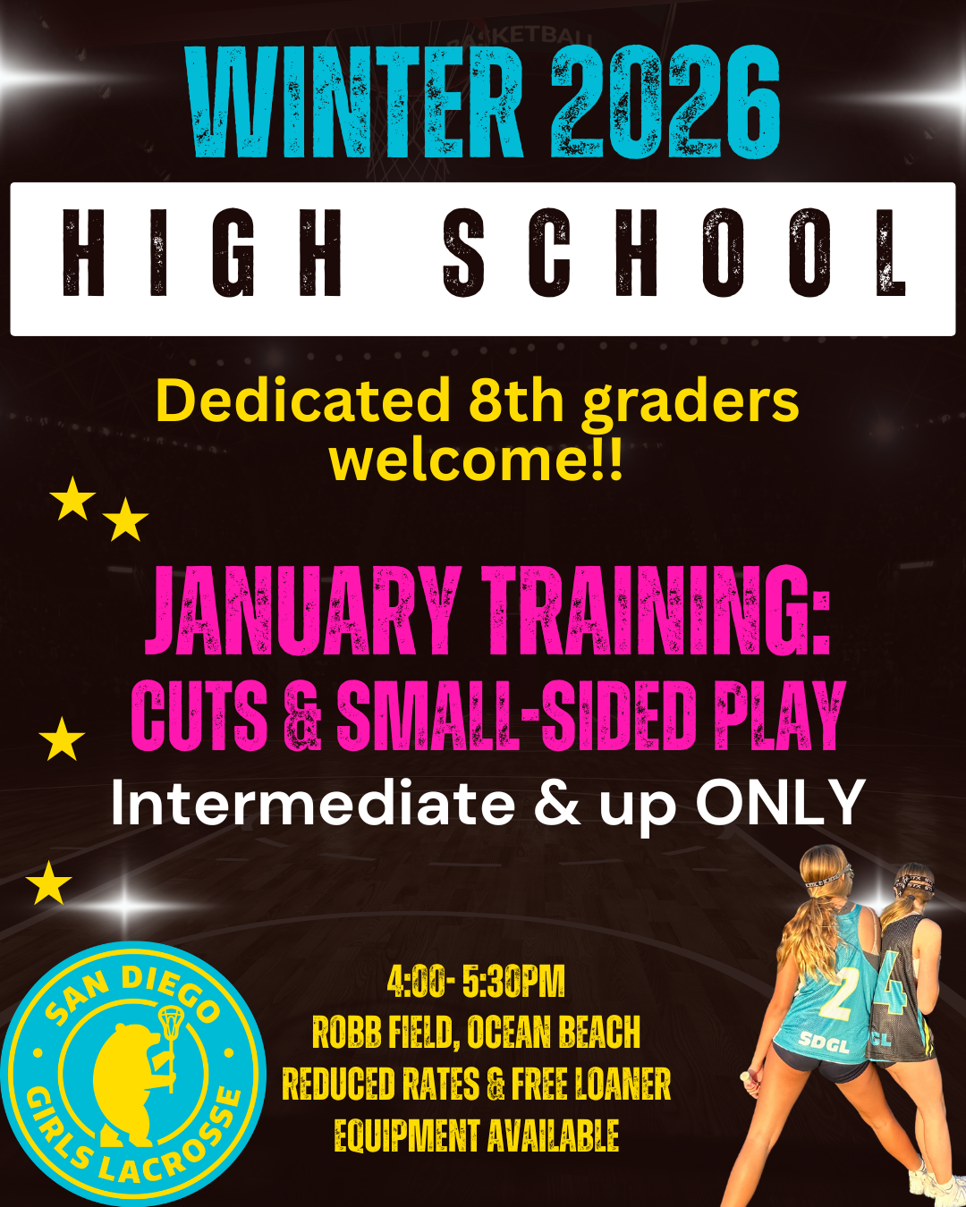 Age: 9th-12th grade / DEDICATED 8th graders are welcome, but please first email Elise@SDGirlsLax.com to ensure this is a good fit
